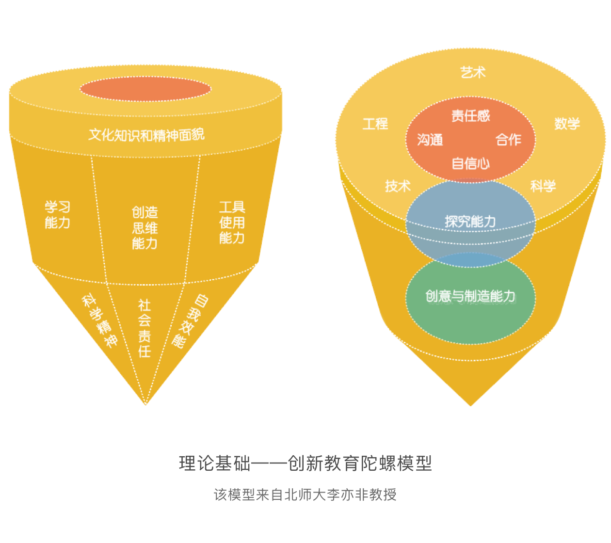 創(chuàng)新教育陀螺模型是構(gòu)建12個(gè)學(xué)年課程的基礎(chǔ)